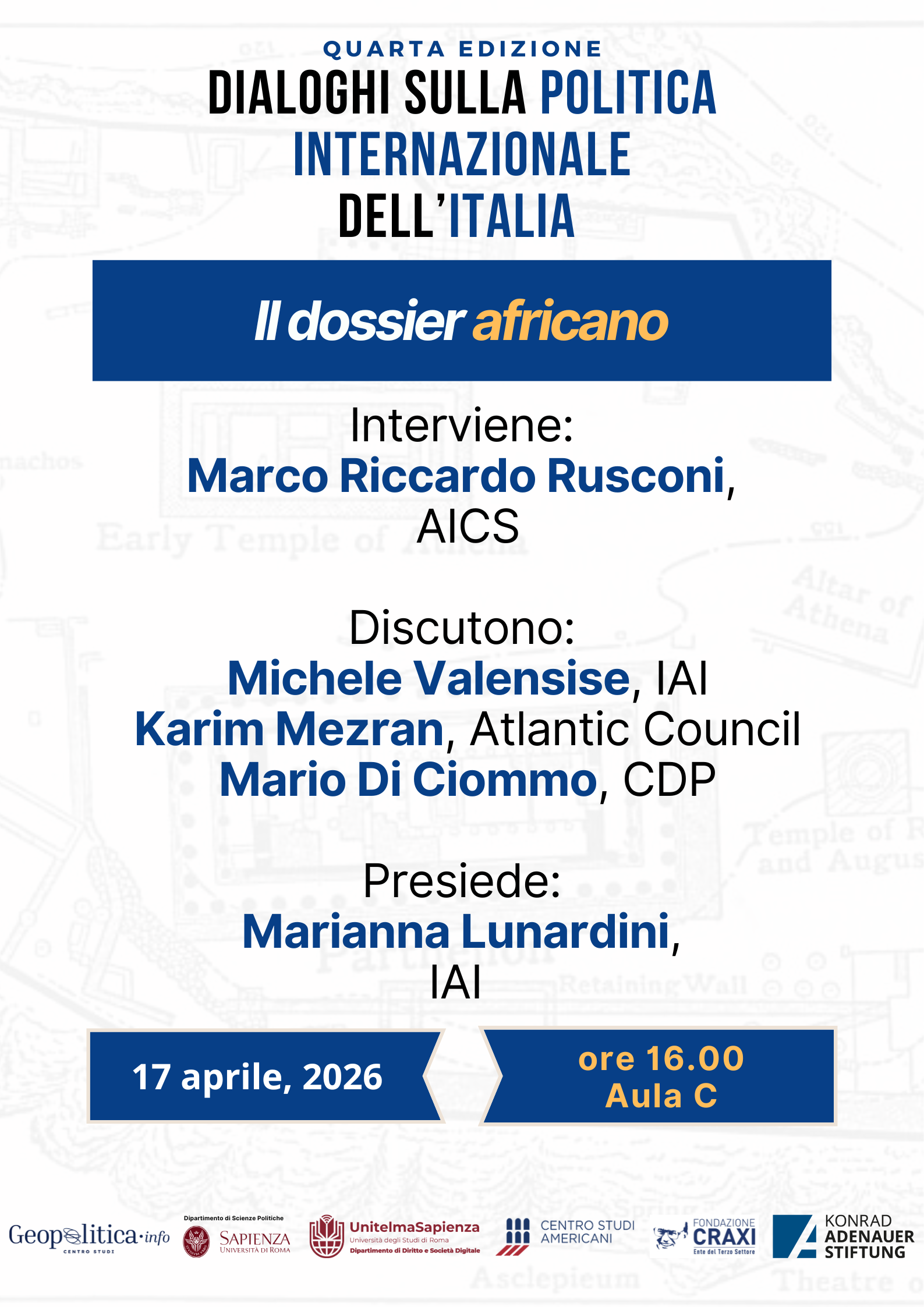 Interverrà Marco Riccardo Rusconi (AICS) e discuteranno Michele Valensise (IAI), Karim Mezran (Atlantic Council) e Mario Di Ciommo (CDP).